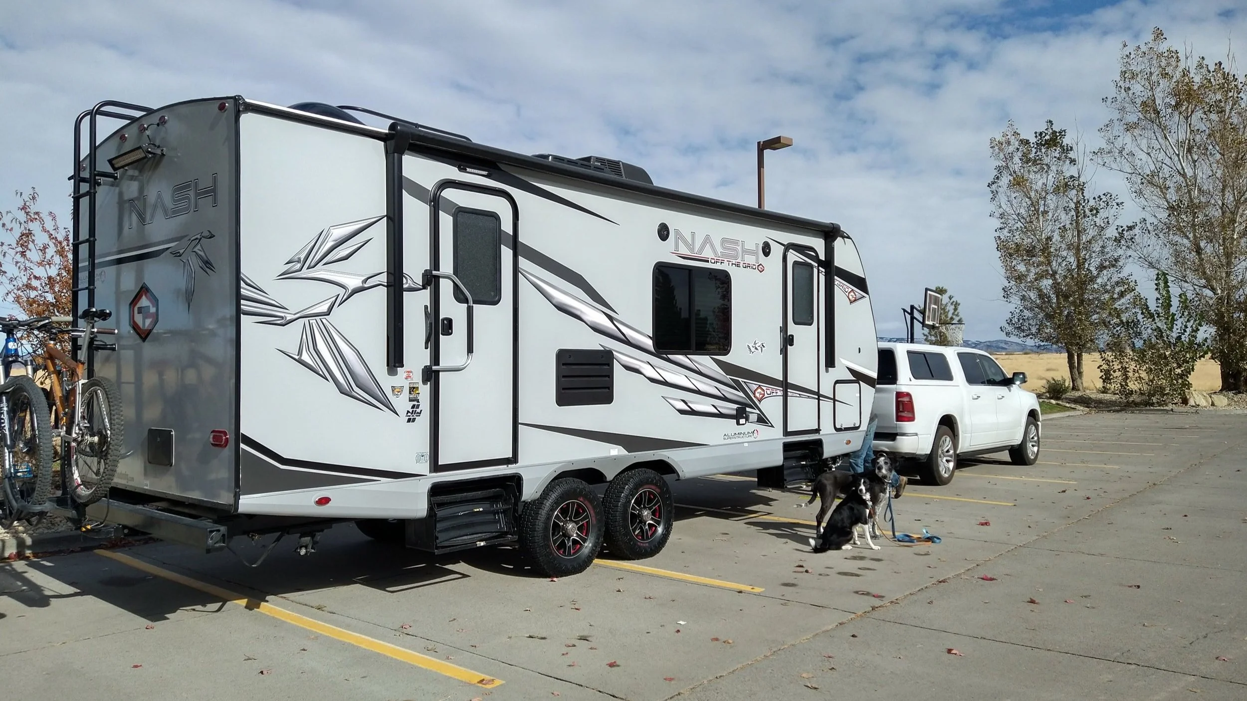 I won’t lie. It was white knuckle. That stretch of I-84 between Blacks Creek and Twin Falls is windy and every hint of a breeze with the trailer felt like we were getting shoved off the road. Being passed by semis doing 80mph, and the way they suck up the trailer and then shove it away while screaming by…. yikes.