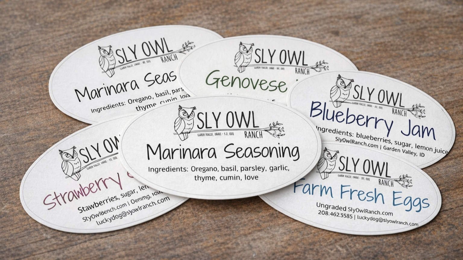 Whether at a summertime outdoor farmers market or indoor market in winter, our booth showcased the welcoming style and tone of the Sly Owl Ranch brand. To create a consistent and memorable experience, I carried the brand expression into our physical products, including packaging, labeling, and booth presentation for fresh produce, eggs, jams, herb blends, and seeds.